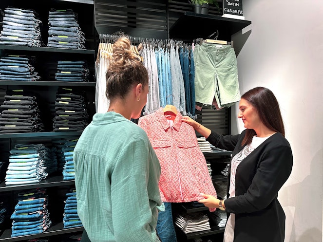 Du möchtest deinen nächsten Modeeinkauf nicht dem Zufall überlassen? Dann buche jetzt einen Beratungstermin mit deinem persönlichen Modeprofi. Es funktioniert ganz einfach: Fülle das Kontaktformular mit deinem Wunschtermin aus und wir bereiten uns mit Outfit-Vorschlägen auf deinen Besuch vor. Du wohnst weit weg oder hast momentan keine Zeit? Kein Problem, mit unserer Online-Beratung überraschen wir dich mit einem persönlichen Beratungsvideo via Whatsapp. Probiere es aus – unsere Modeprofis machen deinen Einkauf zum Erlebnis.